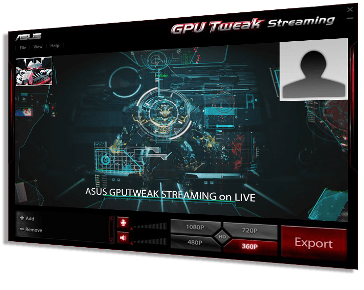 Çevrimiçi olarak anında yayınlayınGPU Tweak Streaming aracı sayesinde ekrandaki görüntüleri gerçek zamanlı olarak yayınlayabilirsiniz; böylece diğerleri oynadığınız oyunları canlı olarak izleyebilirler. Dahası, yayın penceresine kayan metin, resim ve web kamerası görüntüleri de eklemek mümkün. | |